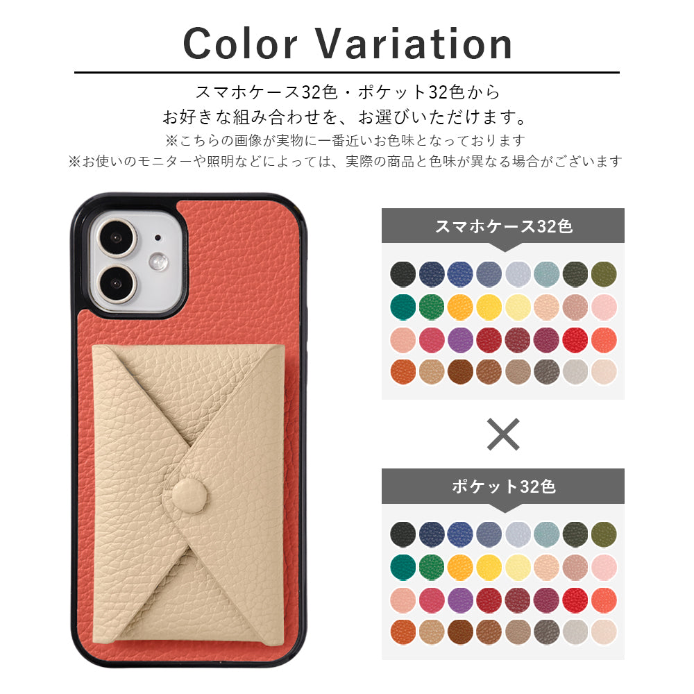 ケースとポケットそれぞれのカラーをお選びいただけるので組み合わせをお楽しみください。