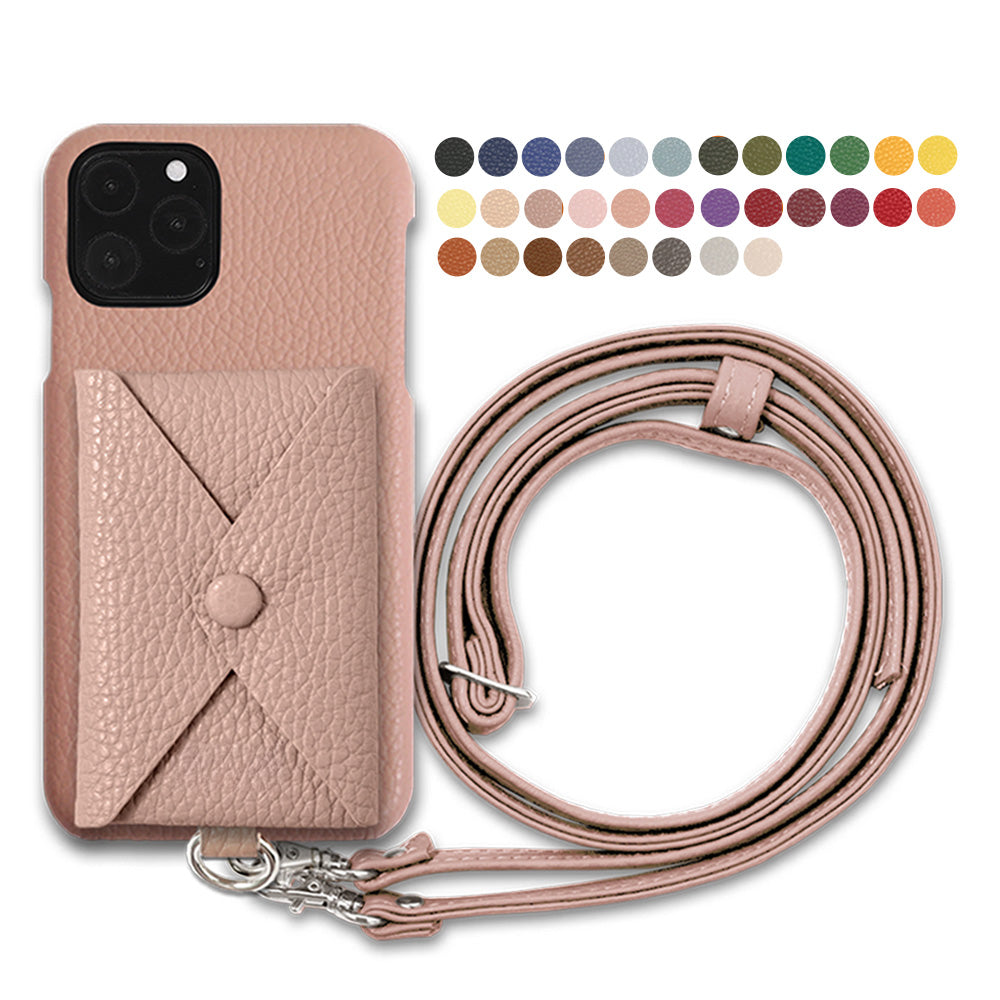 長さ調整して肩掛けできるロングストラップ付き。取り外しも簡単で使い方の幅が広がります。ケースカラーとストラップカラーをそれぞれ選んで組み合わせをお楽しみください。