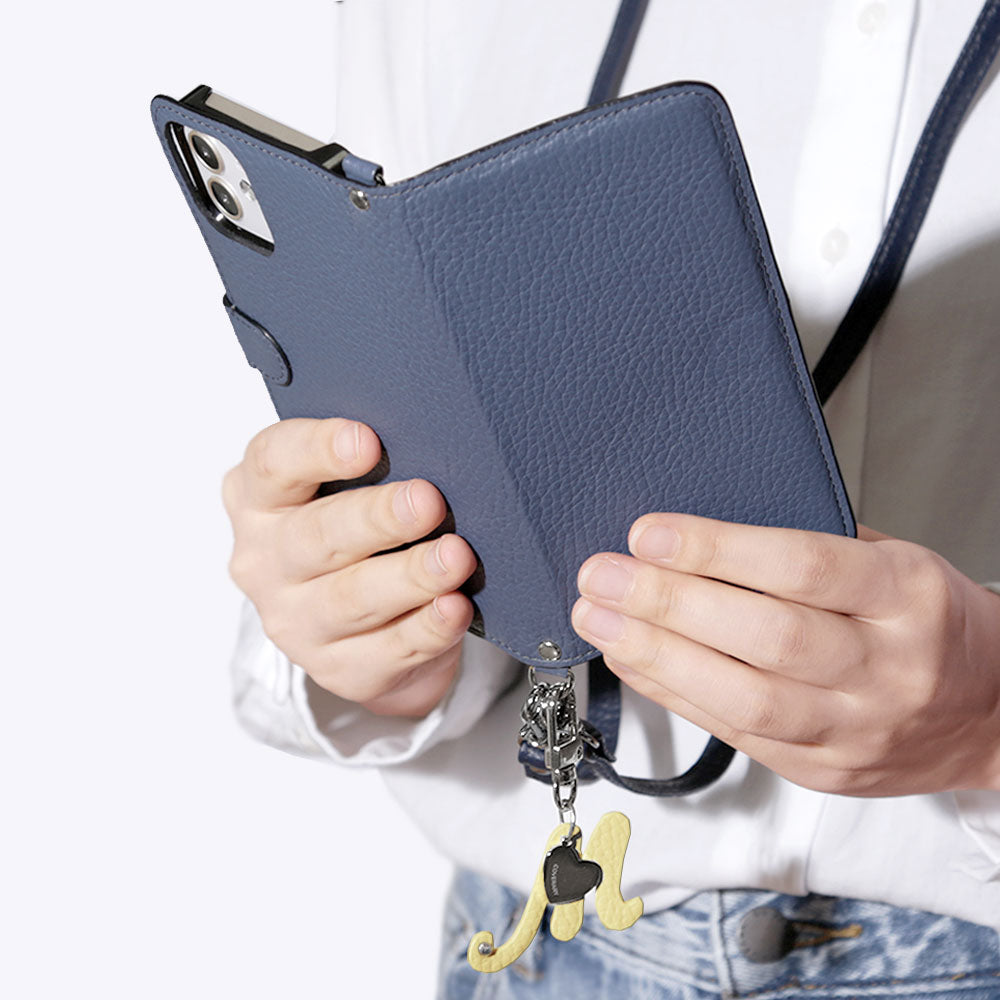 本革 32色 イタリアンシュリンクレザー miniイニシャルチャーム ショルダーストラップ付き 手帳型ケース(ベルトあり)Galaxyシリーズ