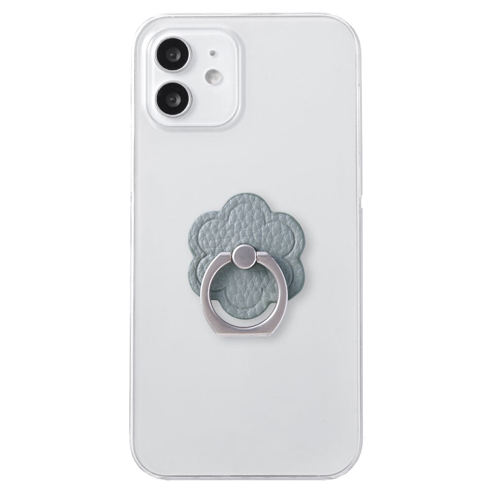 高級感のあるシボ加工のフラワー型レザー調スマホリングとクリアケースのセット。