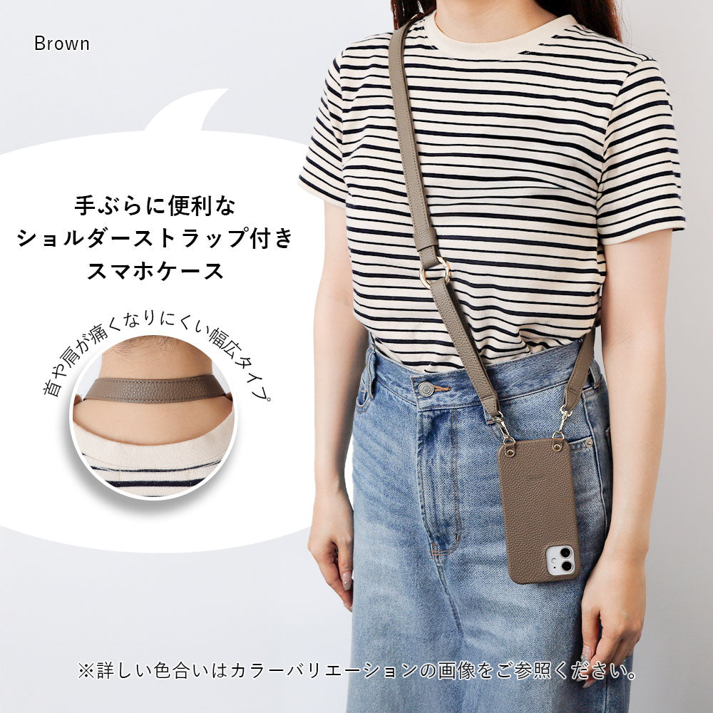ヴィーガンレザー シボ加工 幅広ショルダーストラップ付き 背面ケース iPhoneシリーズ