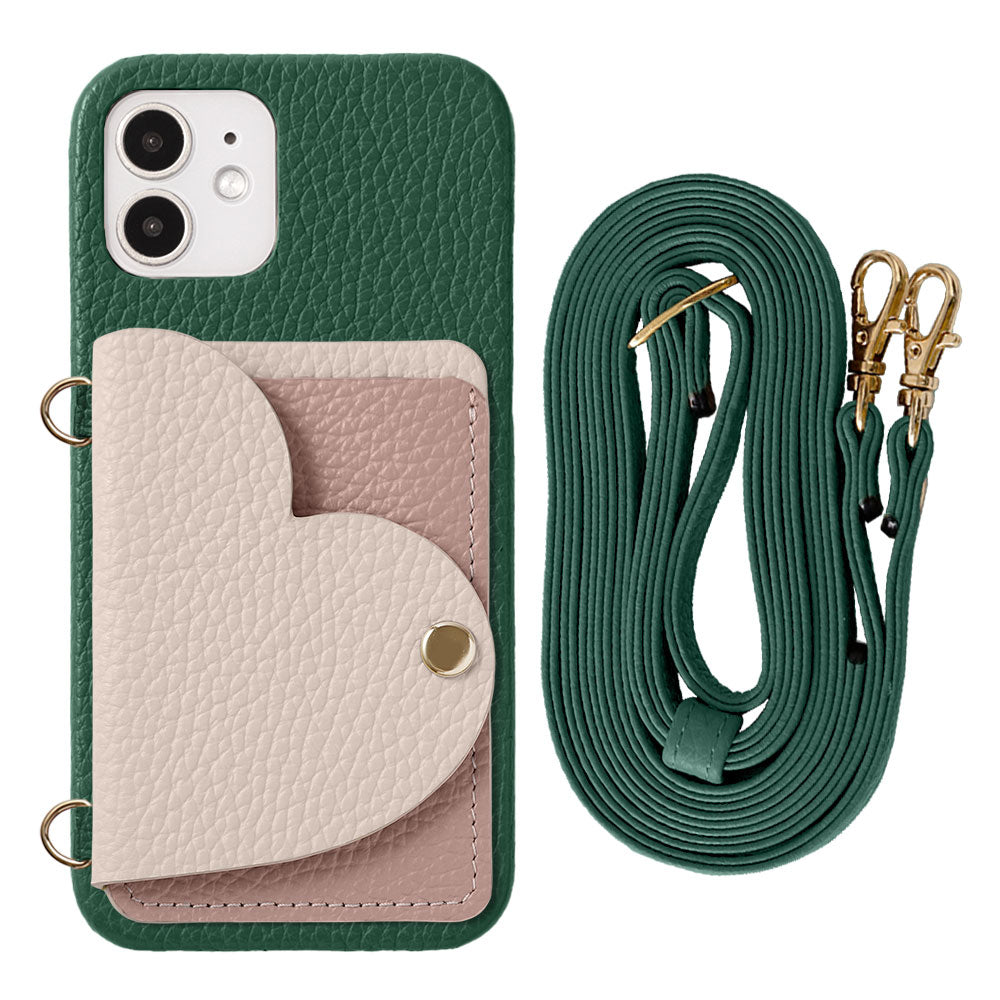 スマホケースとショルダーストラップは32色、カードケースはハート部分とポケット部分のからーをそれぞれお選びいただけるので、バイカラーや同色にしてお気に入りの配色にしていただけます。