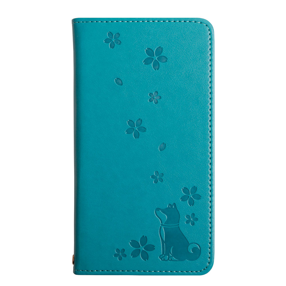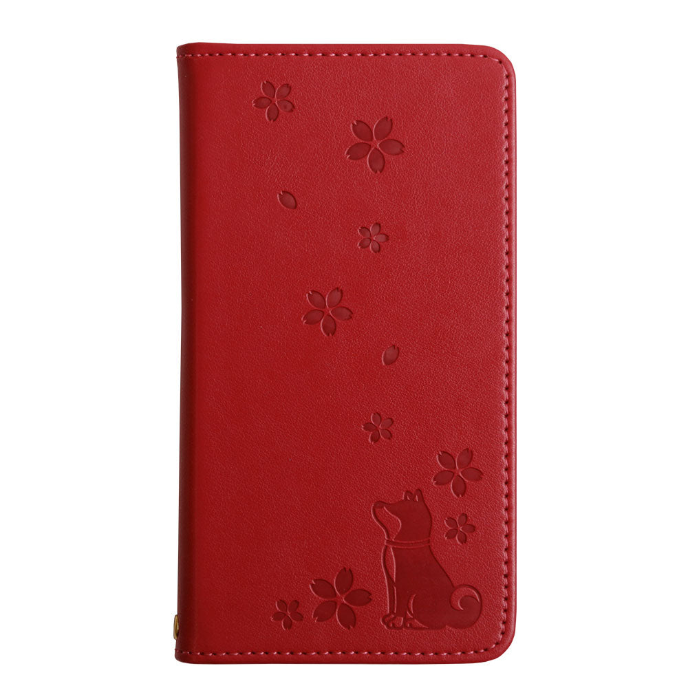 桜の花びらが舞う中で、お花見しながら散歩しているワンコをデザインしたキュートなスマホケース。可愛い柴犬デザイン♪
