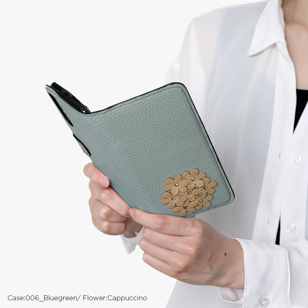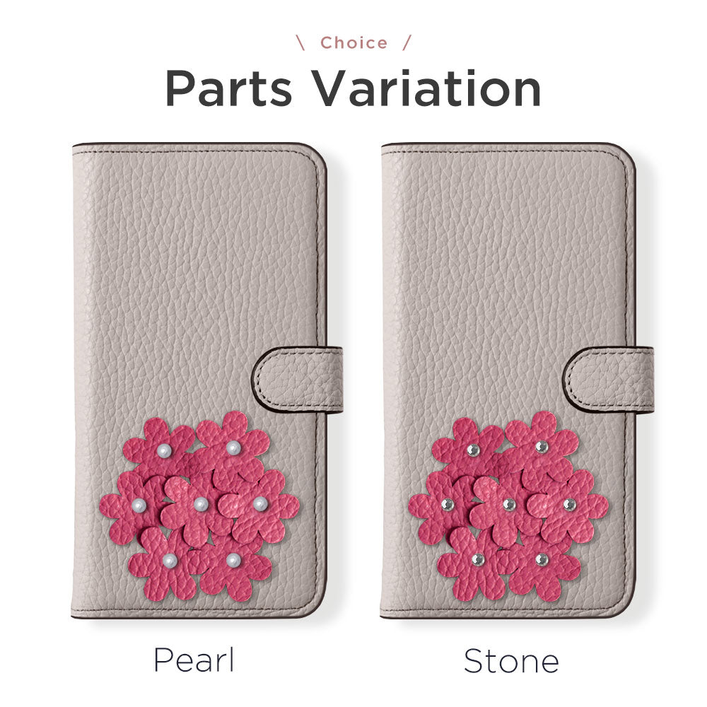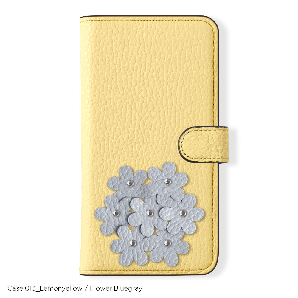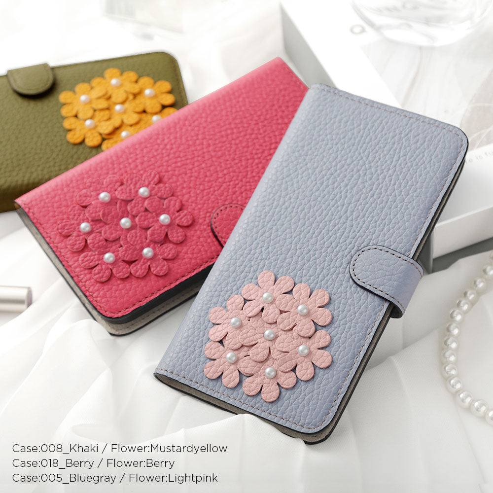 本革 32色 イタリアンシュリンクレザー あじさいモチーフ フラワーデコ手帳型ケース(ベルトあり) Galaxyシリーズ