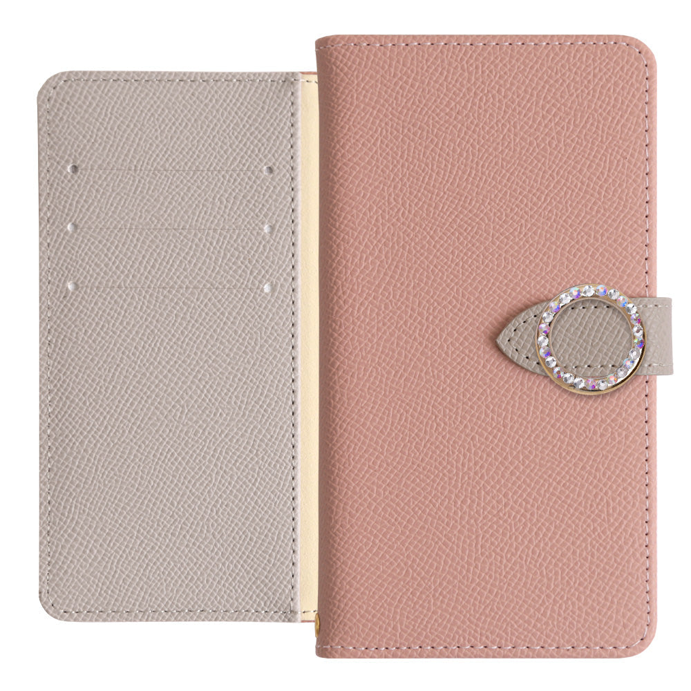 ヴィーガンレザー バイカラー ラウンドストーン スタンド機能 手帳型ケース(ベルトあり)Galaxyシリーズ