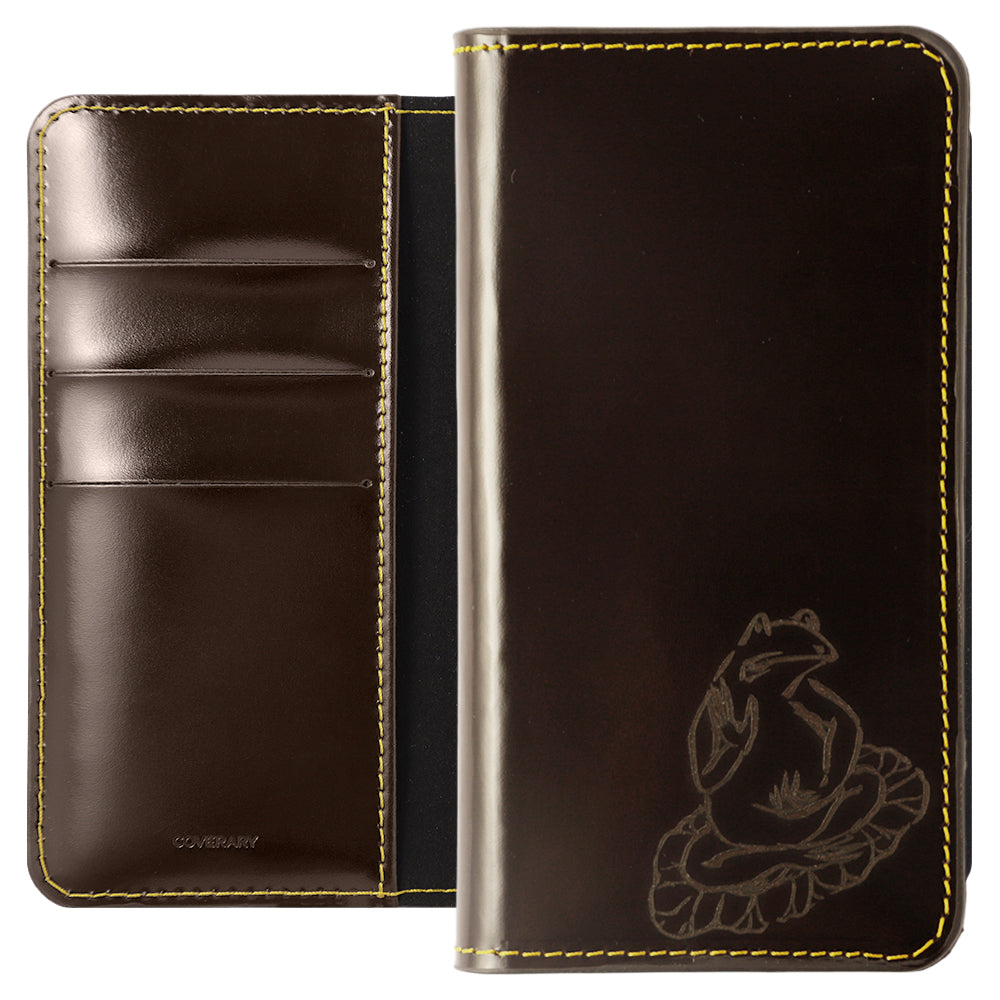 本革 カーフレザー レーザー加工 線画 鳥獣戯画 カード収納付き 手帳型ケース Xperiaシリーズ