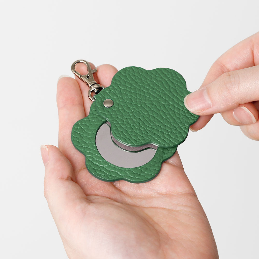 3つのデザインと12色の豊富なカラーから選べるモチーフミラーチャームがセットになったスマホケース。手のひらサイズで大きすぎず、ミラーとしての機能性もバッチリ◎