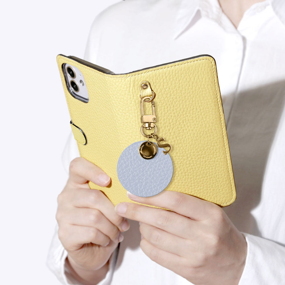 ケースと同じイタリアンレザーを使用したモチーフチャーム付き!チャームは取り外しが可能です。