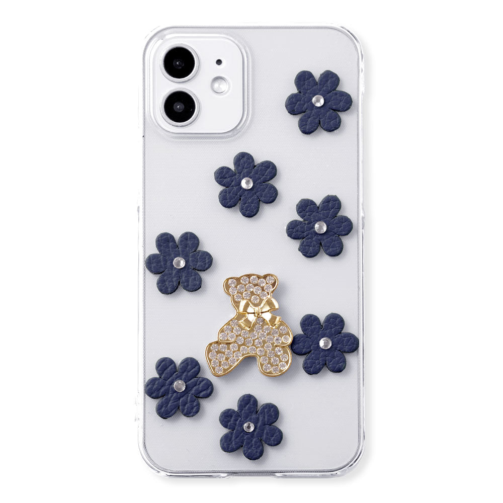 Clear Case Genuine Leather 32 Colors Italian Shrink Leather Flower Bear Deco (Stone) Back Case AQUOS Series