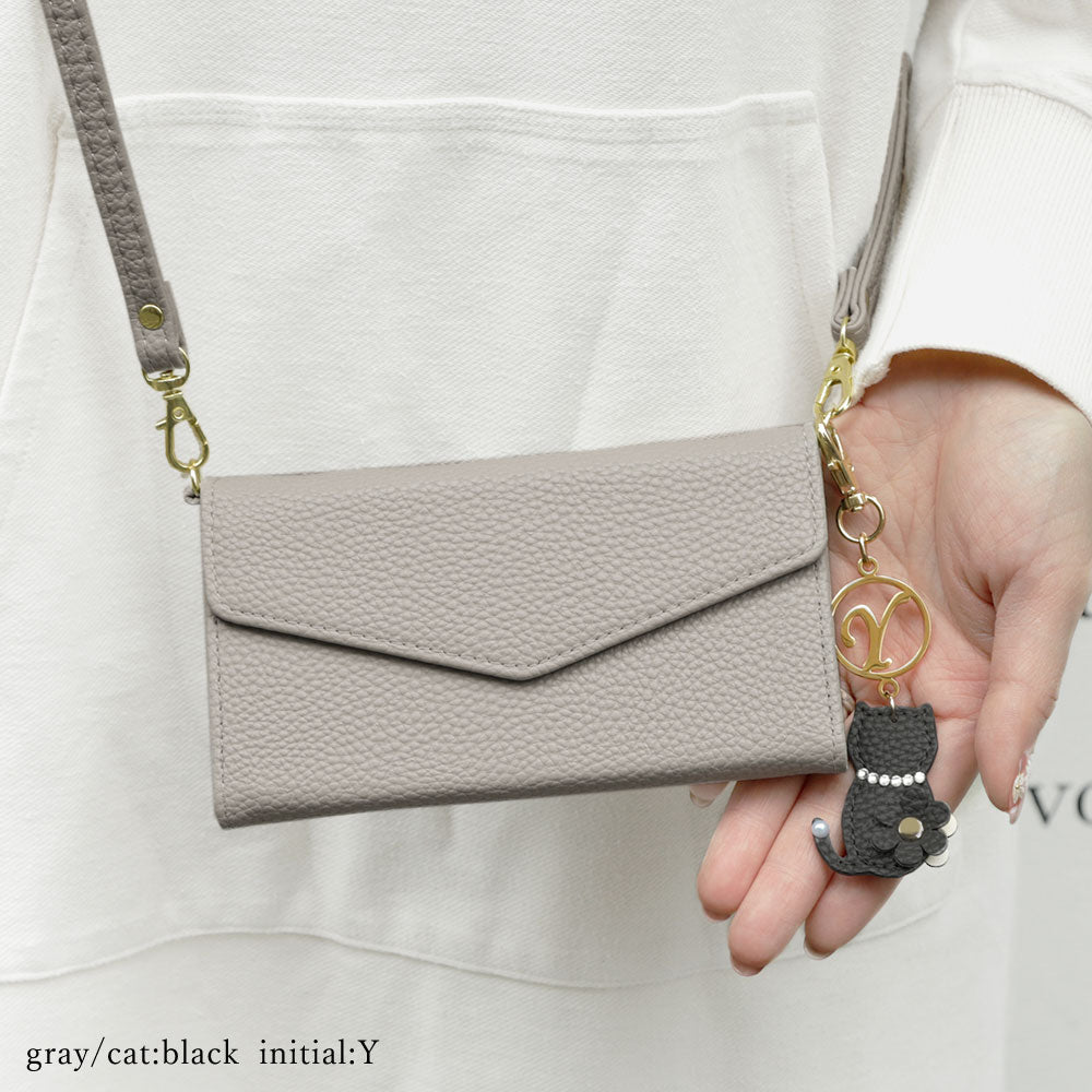 A cute cat charm with a sparkling initial charm♪ You can choose your favorite combination!