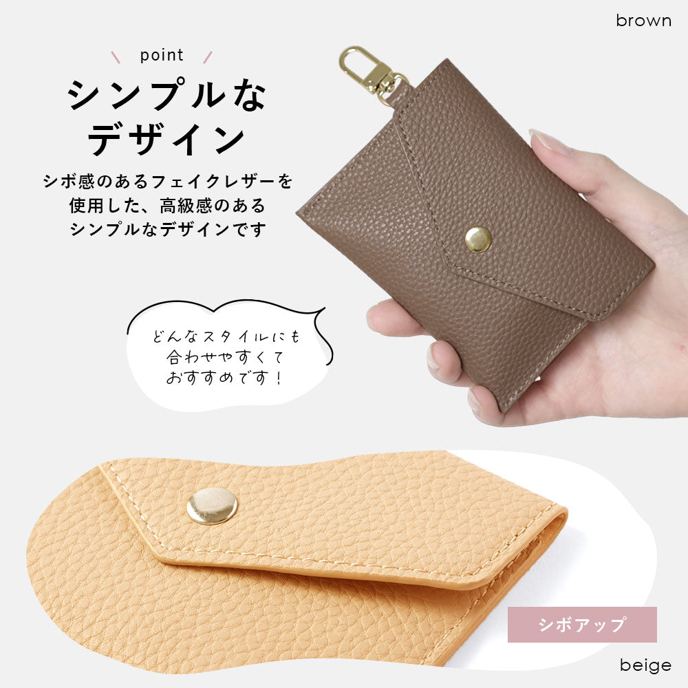 Perfect for storing small items like cards, earphones, and keys♪ The flap opening allows you to quickly take out items when needed. Made with textured faux leather, it has a luxurious feel and a simple design, making it easy to match with any style and highly recommended.