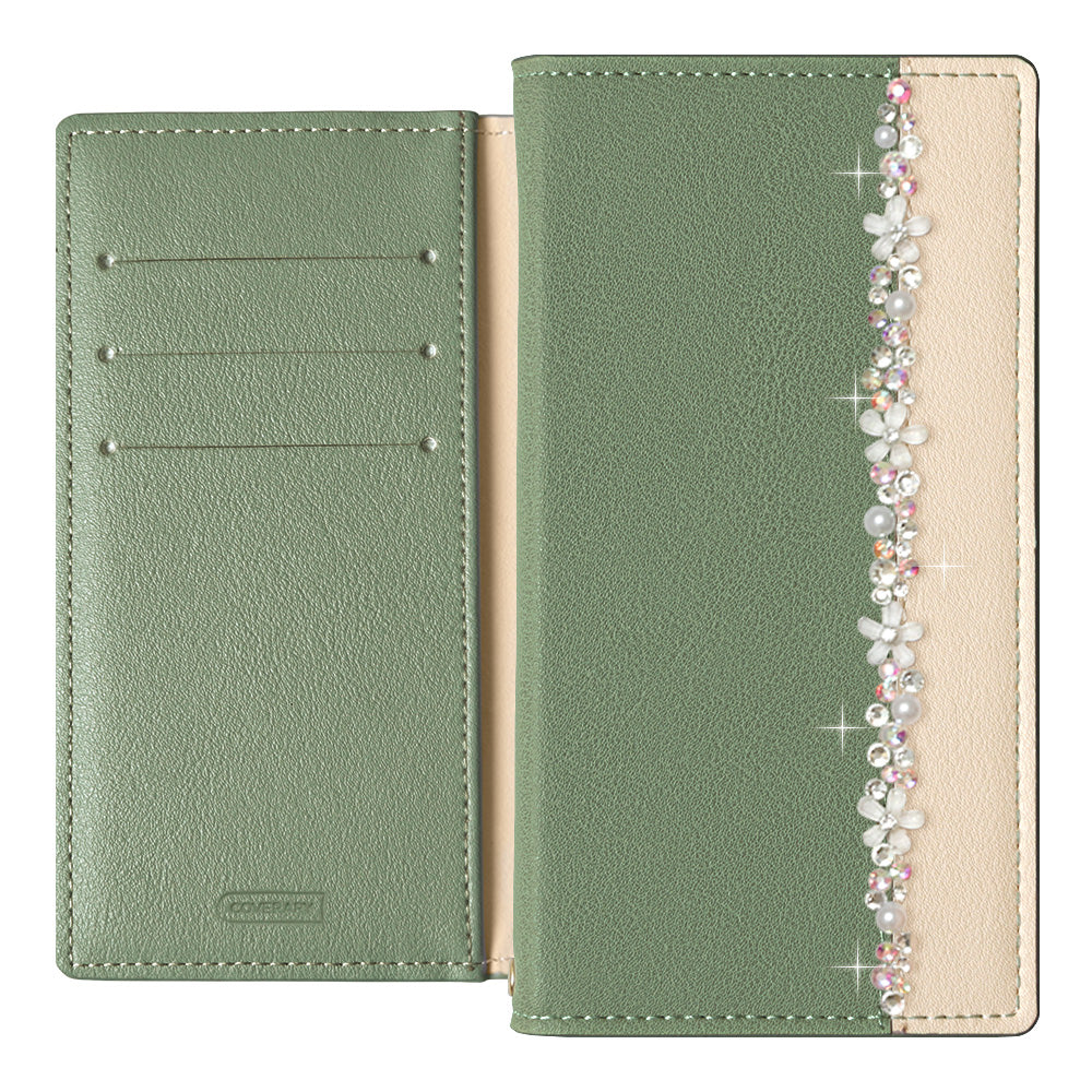 Étui type carnet bicolore terne avec moins de douceur en 8 couleurs avec pierres scintillantes et décors floraux !