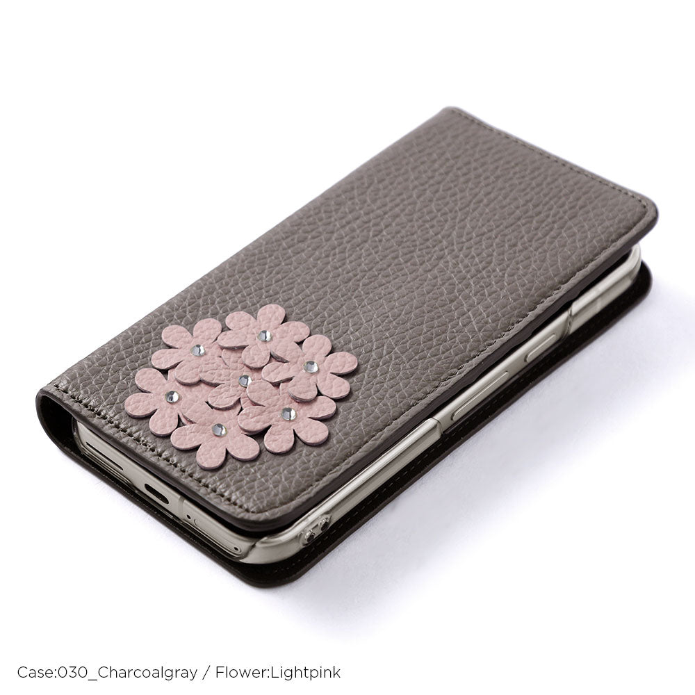 本革 32色 イタリアンシュリンクレザー あじさいモチーフ 手帳型ケース AQUOSシリーズ