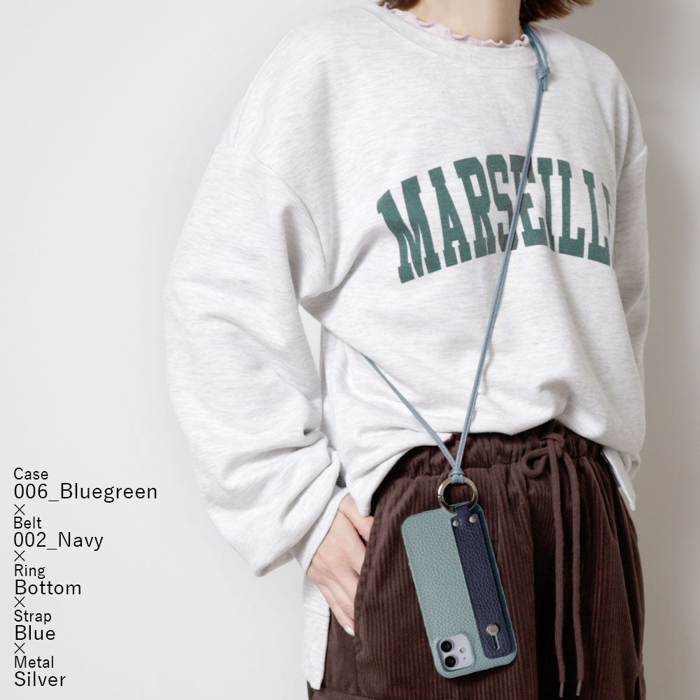本革 32色 イタリアンシュリンクレザー ハンドベルト&リングショルダーストラップ(金具調整なし)付き 背面ケース iPhoneシリーズ