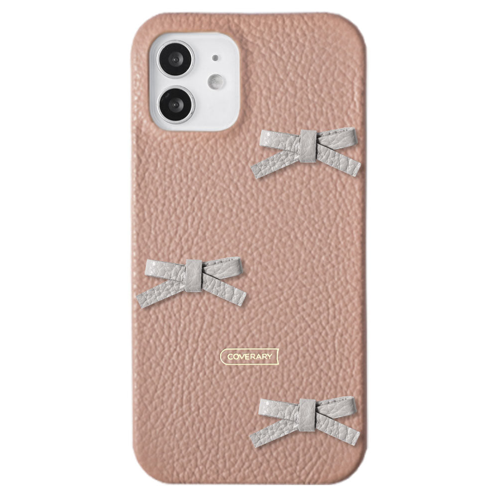 4つのリボンをあしらった大人かわいいスマホケース。小さめのリボンで上品なデザインに仕上げました。