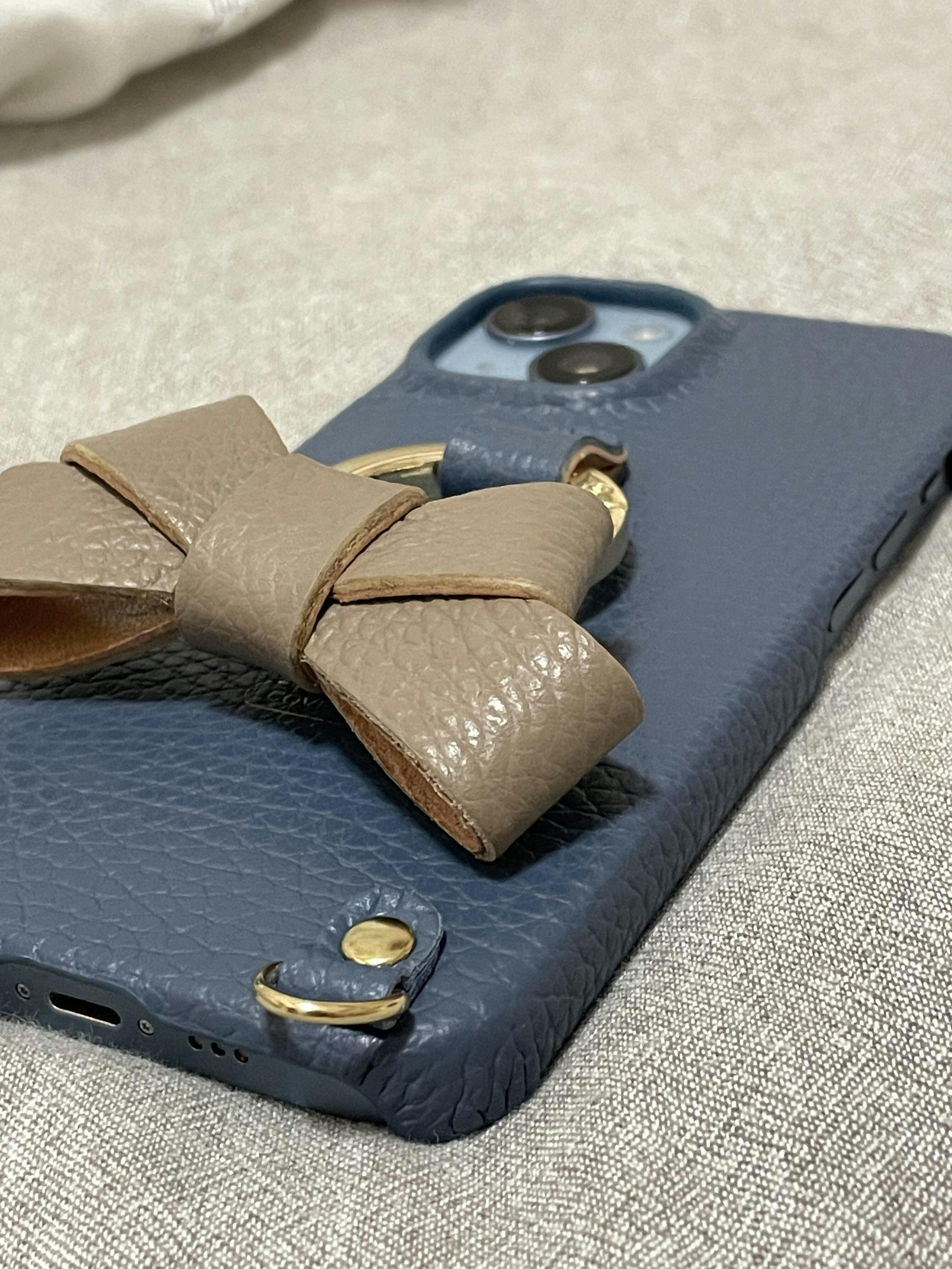 本革 32色 イタリアンシュリンクレザー リボンスマホリング付き 背面ケース