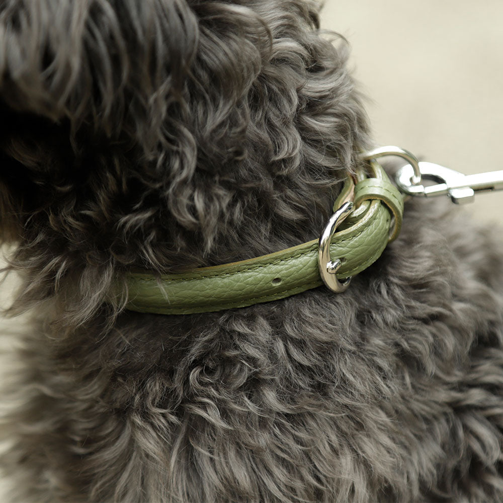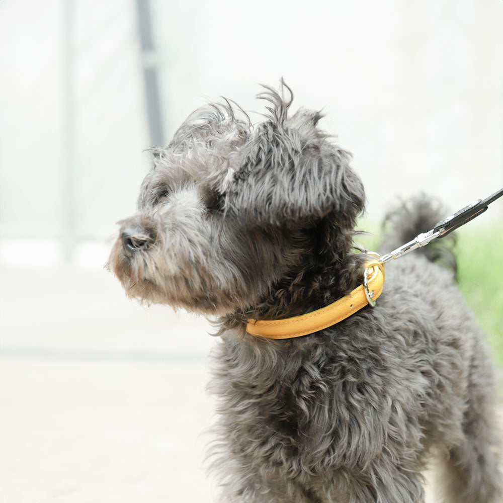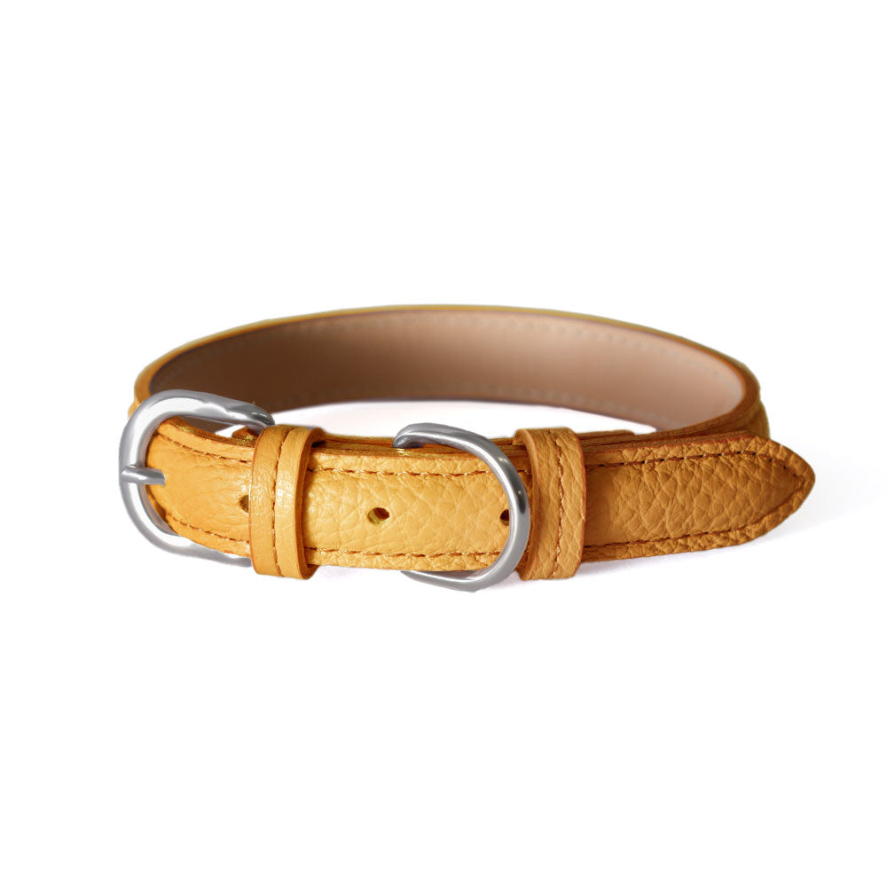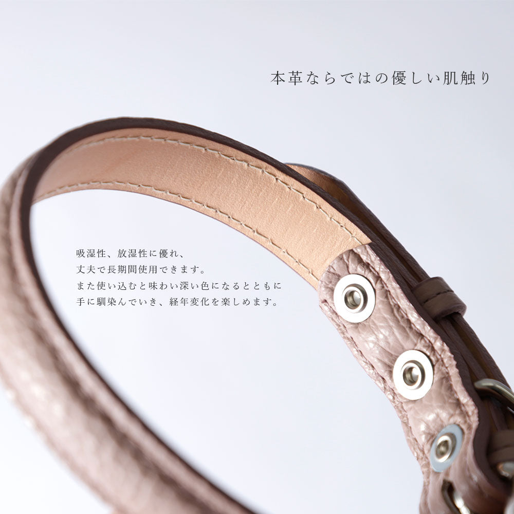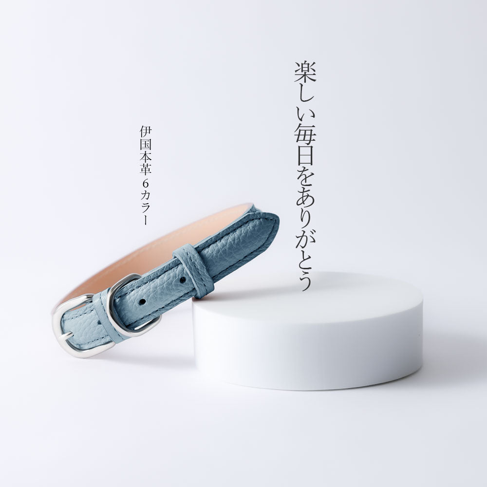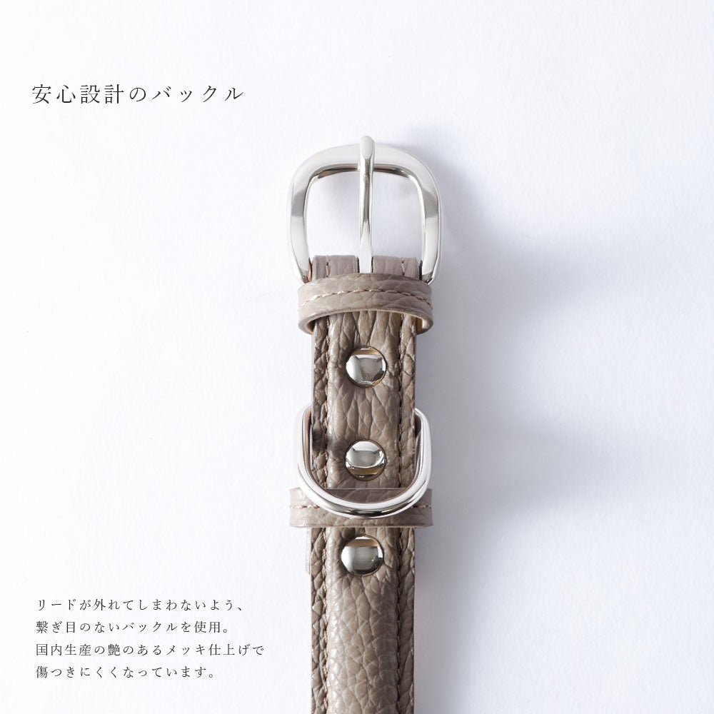 本革100%で肌に優しく安心の設計。イタリアンレザーをシンプルで上品なペット用品に仕上げています。