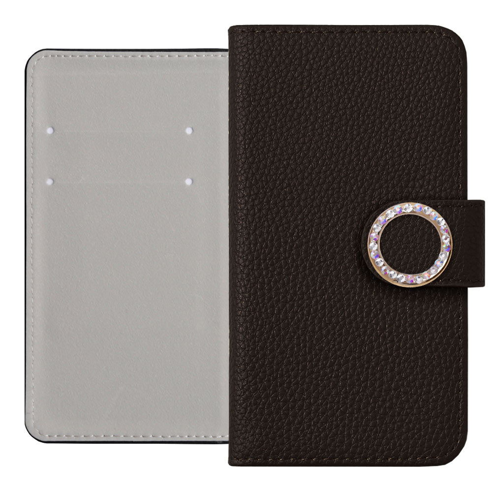 ヴィーガンレザー ベーシック レザー風 ラウンドストーン 手帳型ケース(ベルトあり)