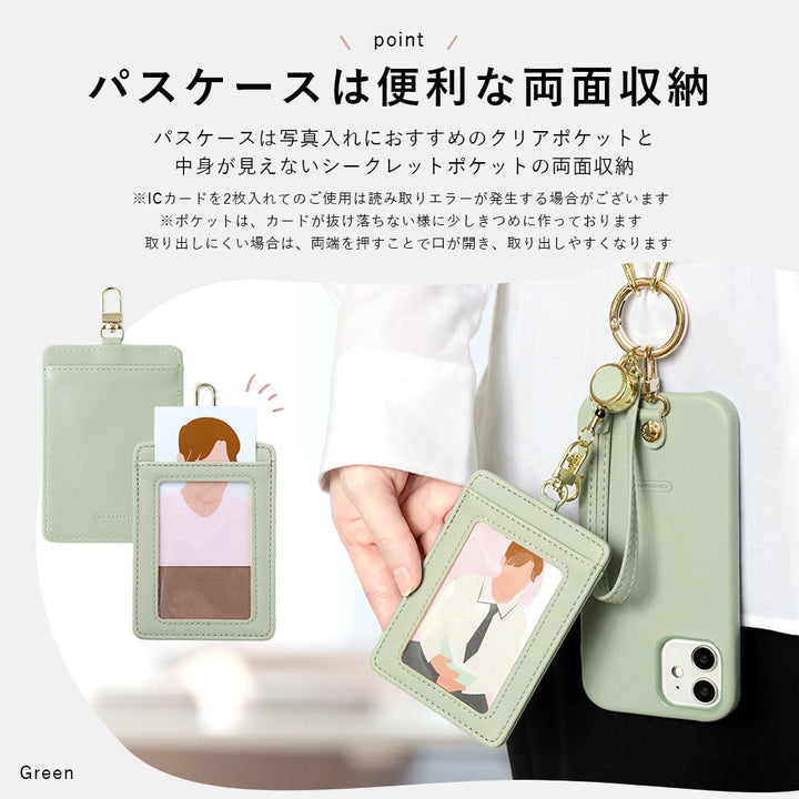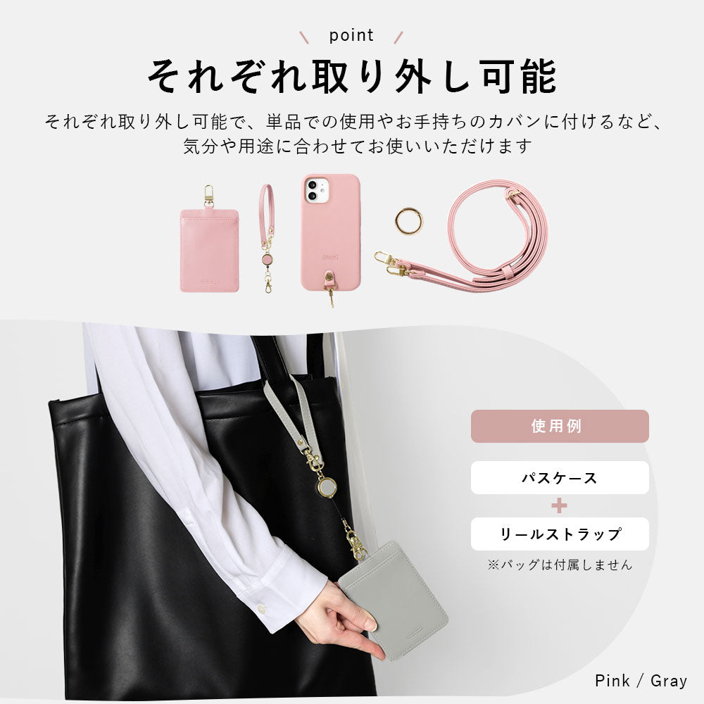 「斜め掛け可能なショルダーストラップ」と「リールストラップ付きパスケース」のセット♪