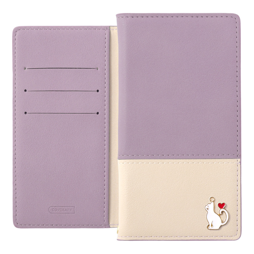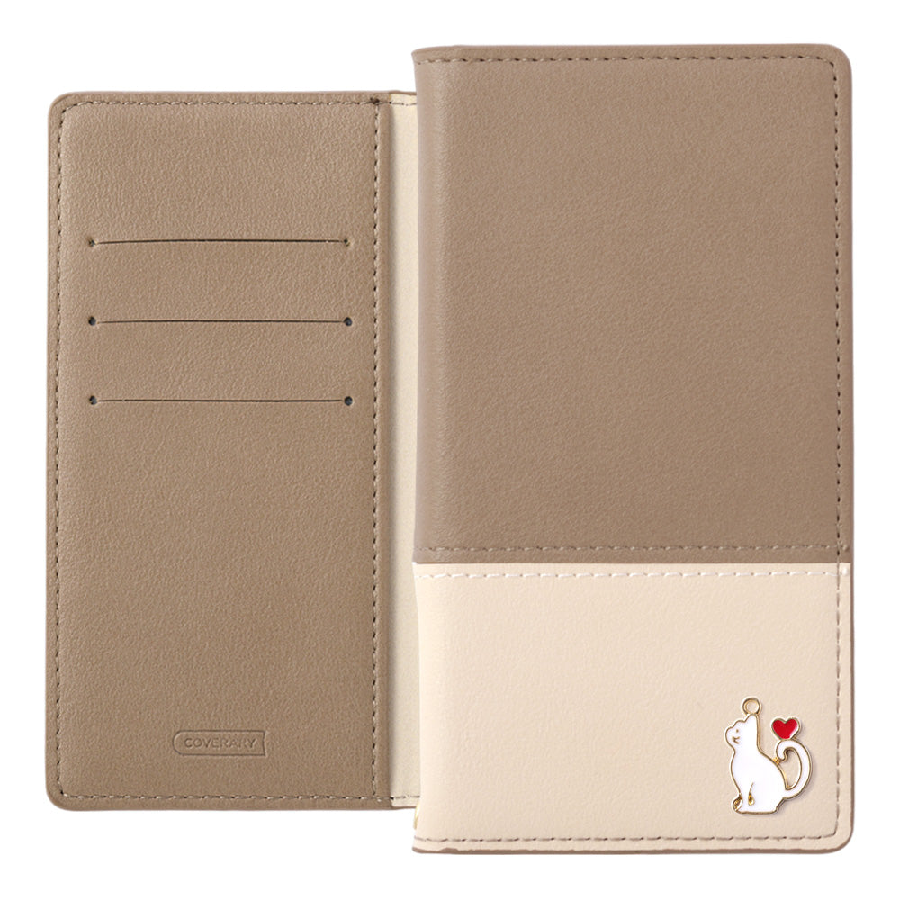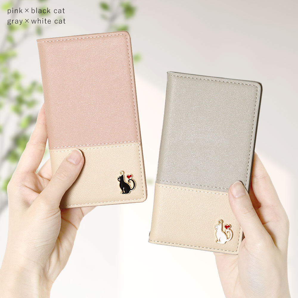 ヴィーガンレザー 表くすみバイカラー スタンド機能 ハートキャットデコ 手帳型ケース