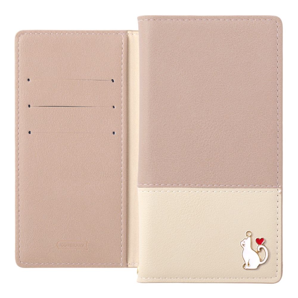 ヴィーガンレザー 表くすみバイカラー スタンド機能 ハートキャットデコ 手帳型ケース AQUOSシリーズ