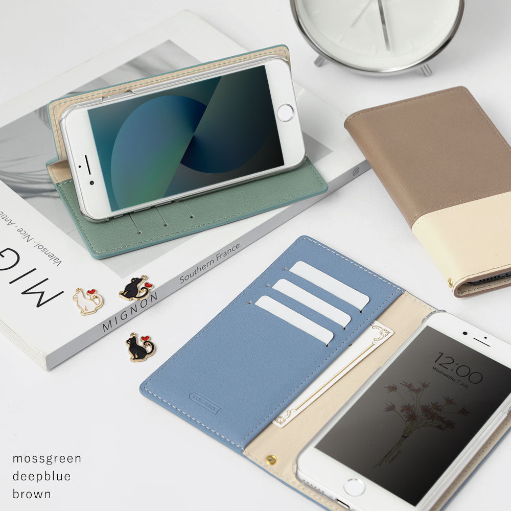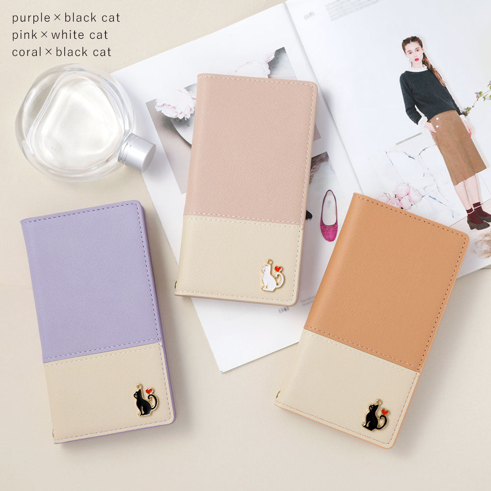 オンでもオフでも使える、スクエアタイプのスマホケースです。ワンランク上のおしゃれが楽しめるバイカラー全8色からお選びいただけます。ワンポイントのネコパーツがかわいい♪
