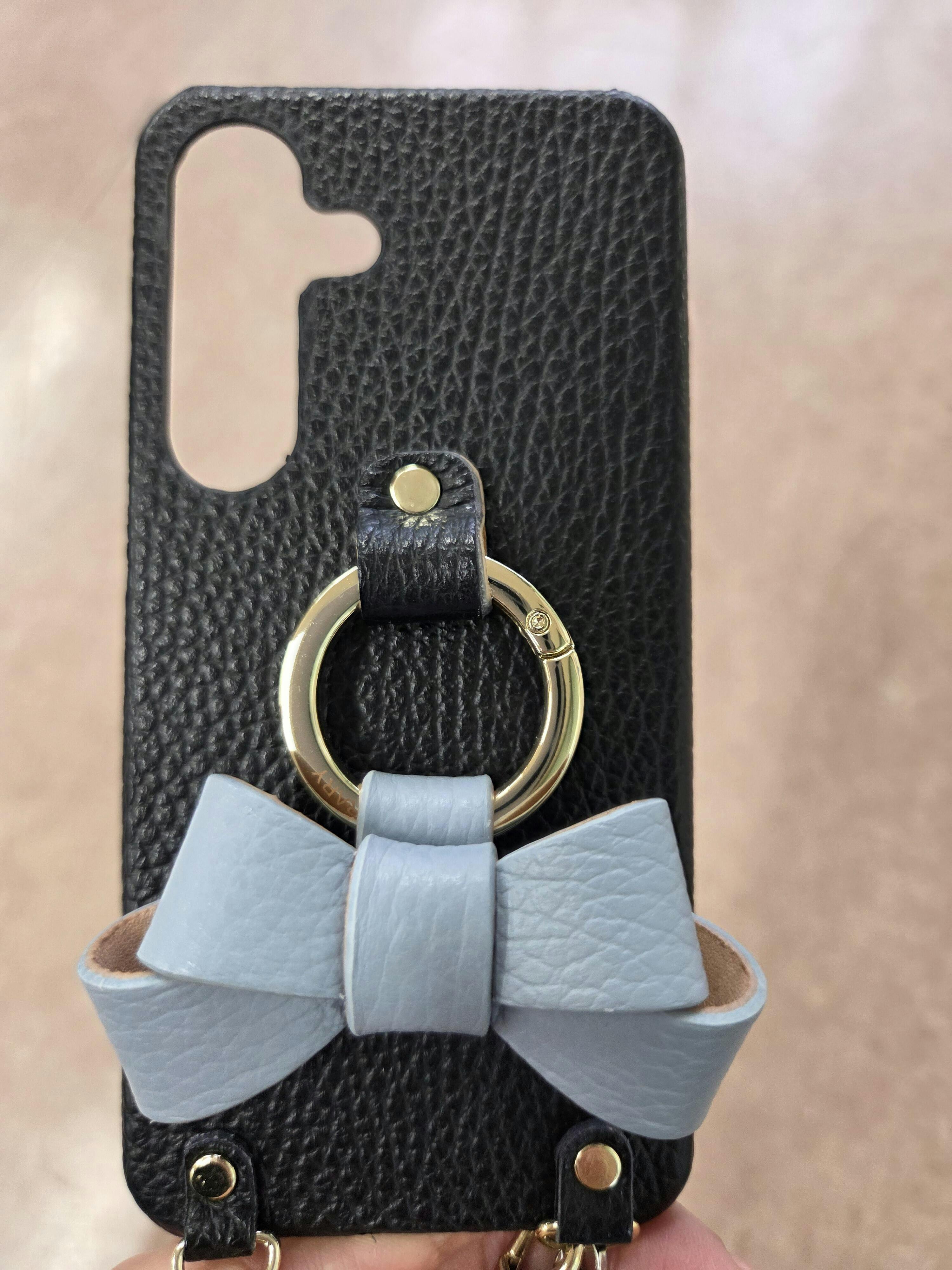 長さ調整して肩掛けできるロングストラップ付き。取り外しも簡単で使い方の幅が広がります。ケース・ストラップ・リボンスマホリングカラーをそれぞれ選んで組み合わせをお楽しみください。