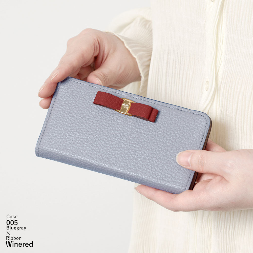 大人可愛いシンプルリボンが付いた手帳型スマホケース。