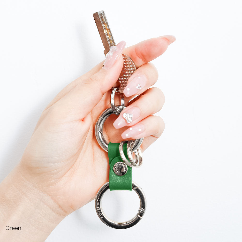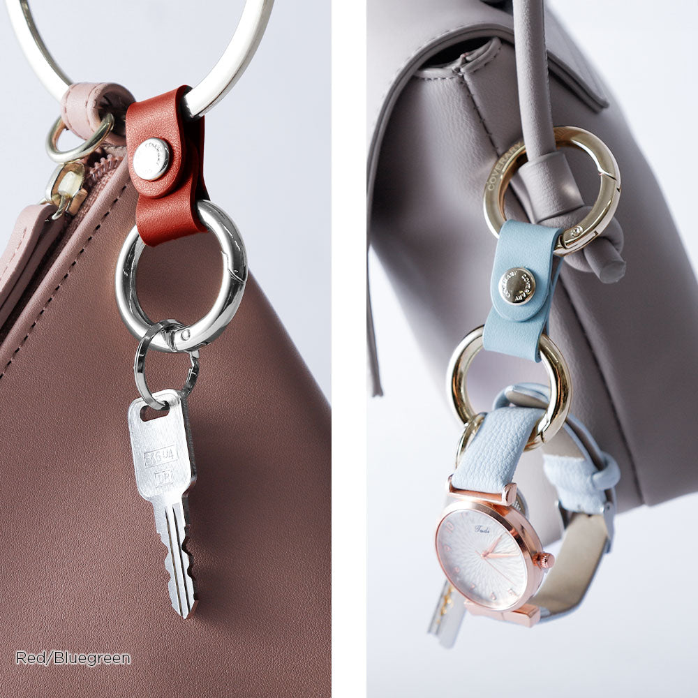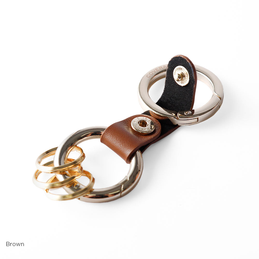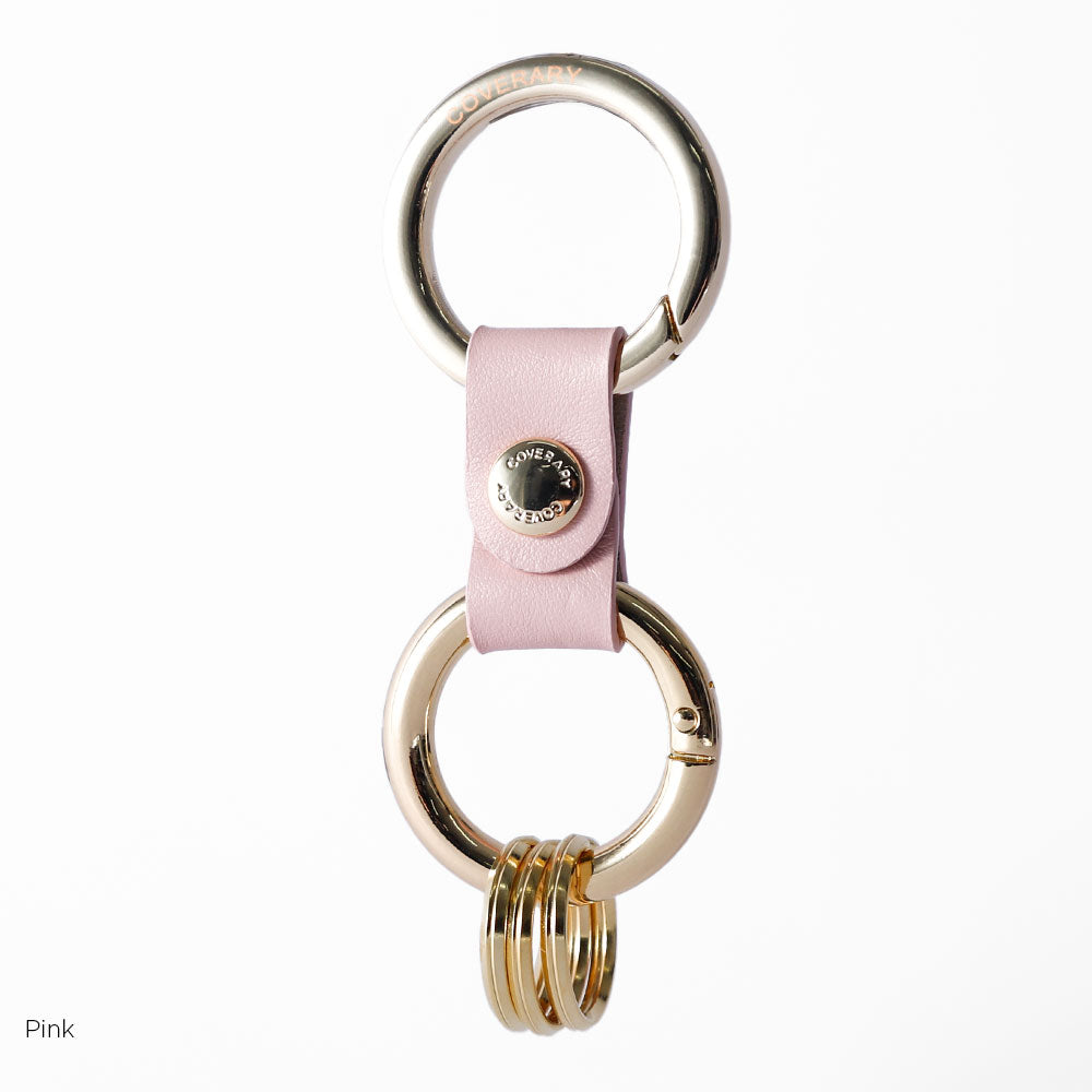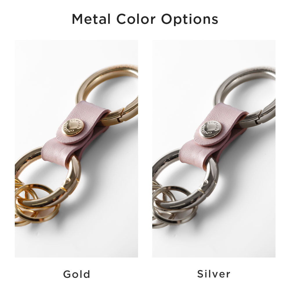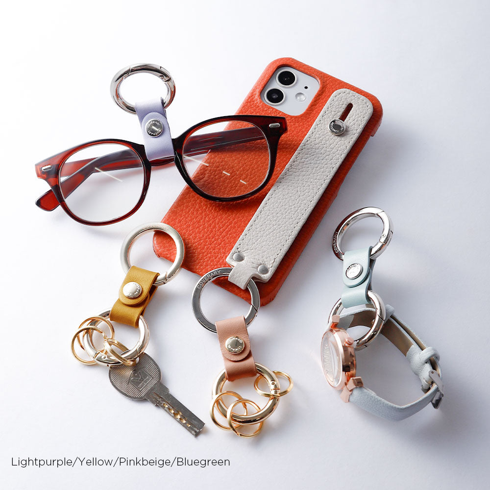 カラビナ付きキーリングは、鍵の付け外しやバッグ・ベルトループへの取り付けもスムーズで、便利にご使用いただけます。アクセサリーとしてもさりげなく使えるデザインです。レザーと金具カラーをそれぞれお選びいただけます。