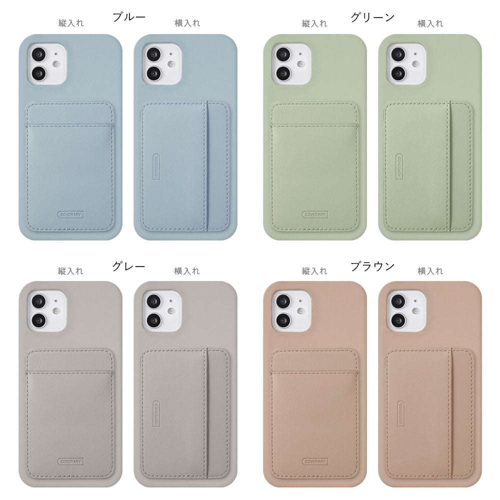 ヴィーガンレザー くすみパステル 縦・横選べるカードポケット付き 背面ケース Galaxyシリーズ