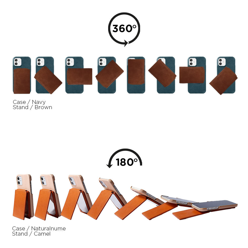 本革 栃木レザー Magsafe対応 回転スタンドミラー カードケース付き 背面ケース iPhoneシリーズ