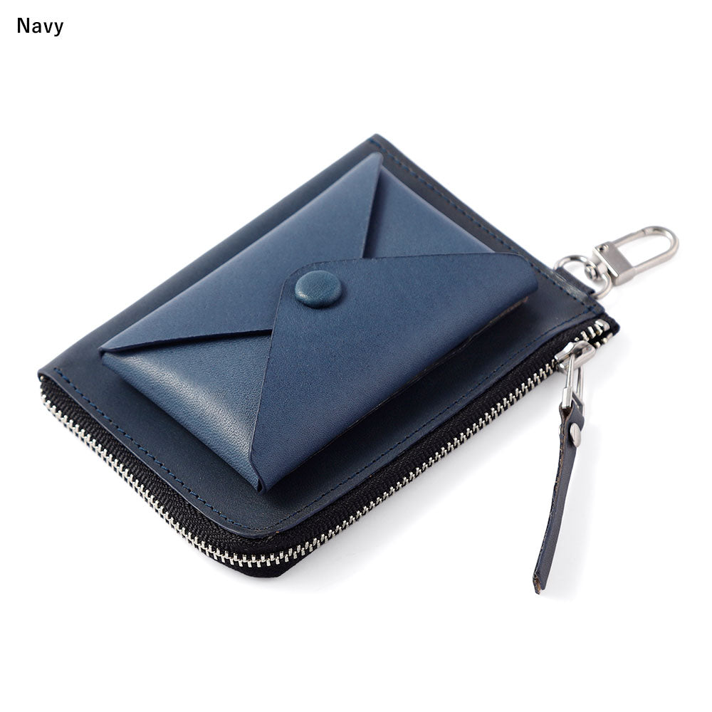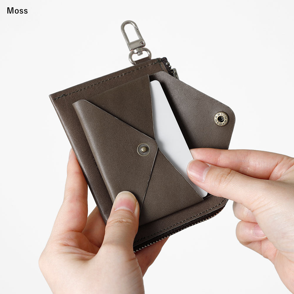 ミニウォレットの内側にはポケットがあり、小銭やカードを別けて収納が可能。大きく開くL字ファスナーで取り出しやすく、スムーズにお使いいただけます。外付けポケットもセットになって大容量タイプ。