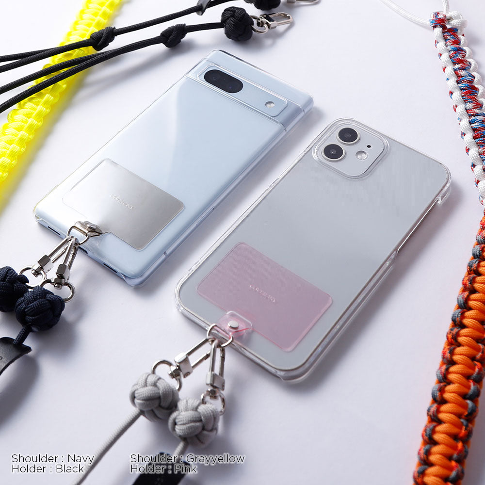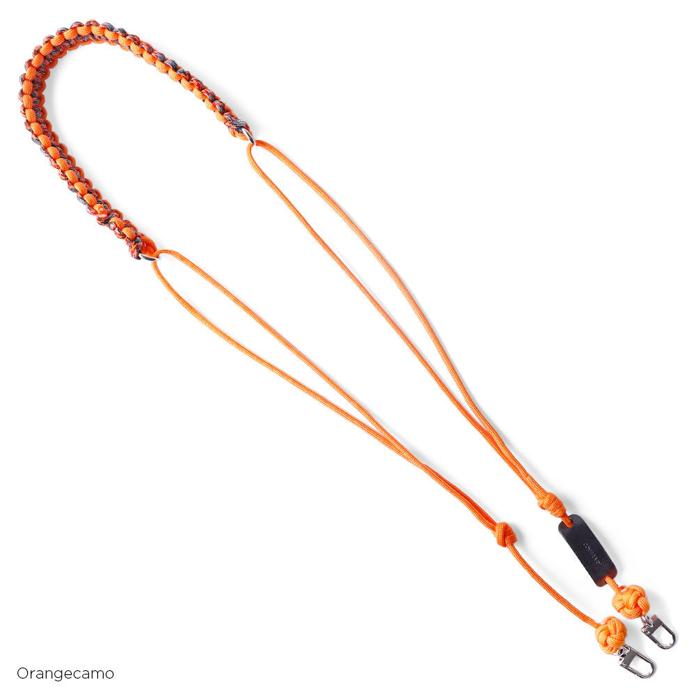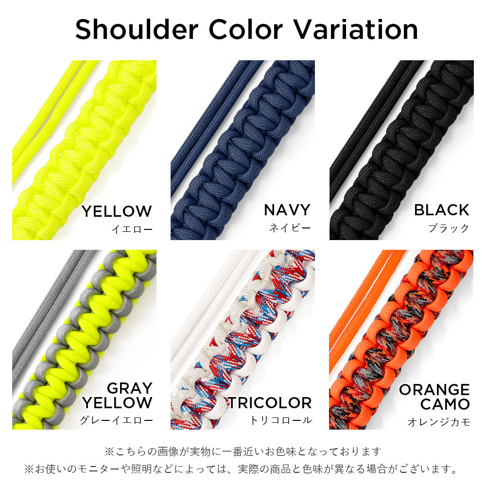 アウトドアに欠かせないパラコードを使用した丈夫なショルダーストラップ。