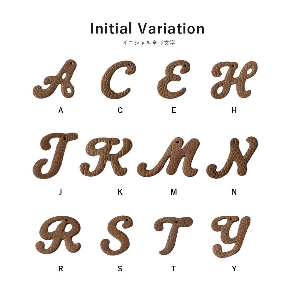 ケースと同じイタリアンレザーを使用したイニシャルチャーム付き!チャームは取り外しが可能です。